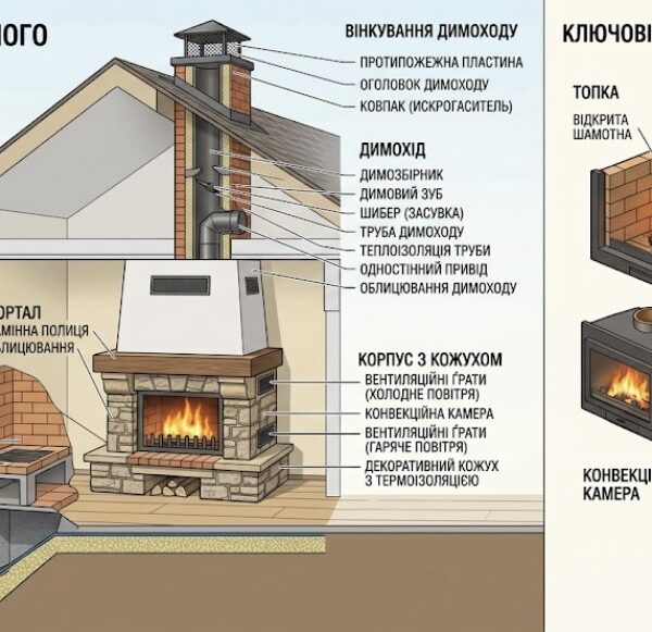 Основні складові каміна.